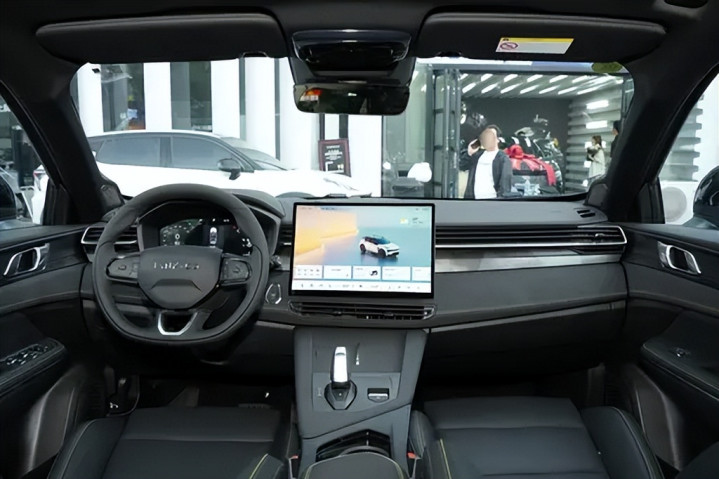如果说外观的升级属于“视觉上的焕新”,那么内饰则体现了“体验上的进化”。进入车内,首先映入眼帘的是简洁而富有层次感的中控布局。新款01采用横向布局的设计语言,中控屏升级为15.4英寸悬浮式触控屏,分辨率达到2.5K级别,显示效果清晰细腻。屏幕采用横置设计,相比老款的竖屏更符合操作逻辑,界面交互也更人性化,搭配12.3英寸全液晶仪表盘,形成强烈的科技氛围。