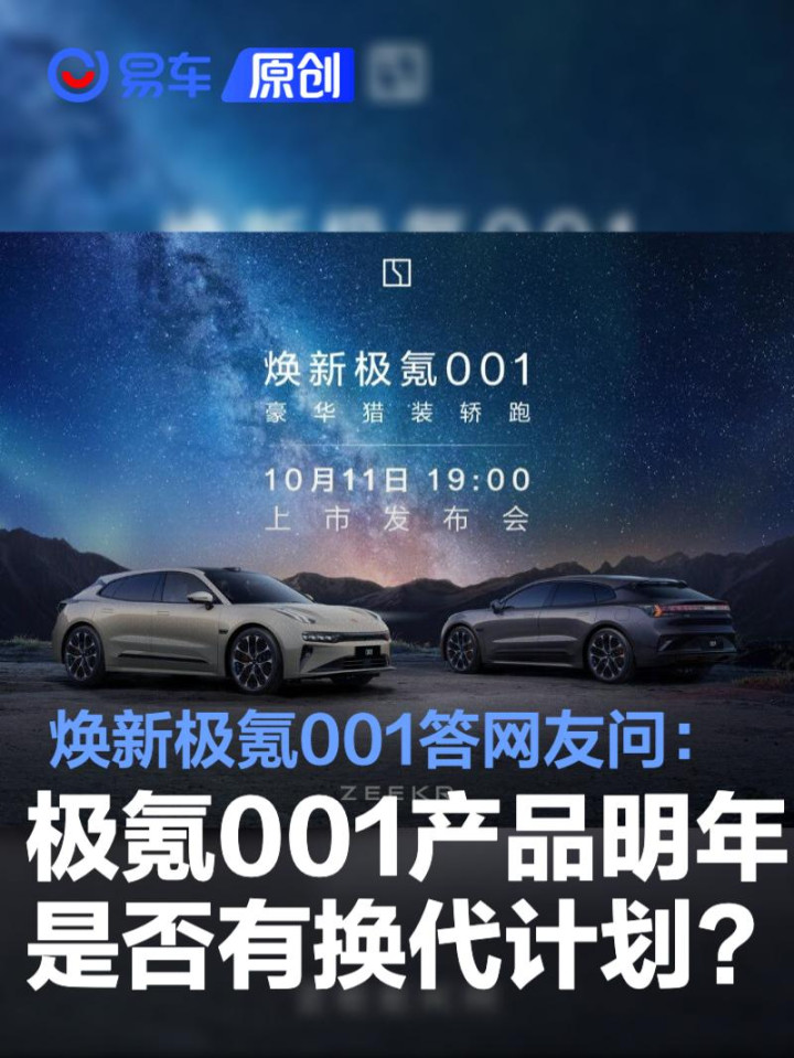 易车讯日前,极氪汽车发布新一期焕新极氪001答网友问,针对”焕新极氪001推出后,极氪001产品在2026年是否有换代计划?“、”焕新极氪001预售权益什么时候截止?“等4个问题一一进行解答。焕新极氪001上市发布会将于今晚19:00正式举行。
